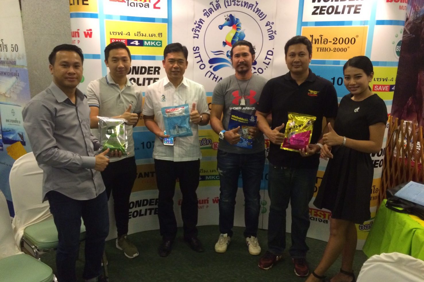 โดยทางบริษัทได้นำสินค้ากลุ่มสัตว์น้ำ ตราม้าน้ำ อาทิเช่น ซีโอไลท์, ไทโอ-2000, มิวแต้นท์โกลด์, บาซิลลัส ซับติลิส 1070, บีเอส-เอ, โรโดแบคซิล, โฟโต้แบค, ออร์แกนิค คาลิ, อ๊อกโบว์, และเทคออฟ ไปร่วมงานด้วย